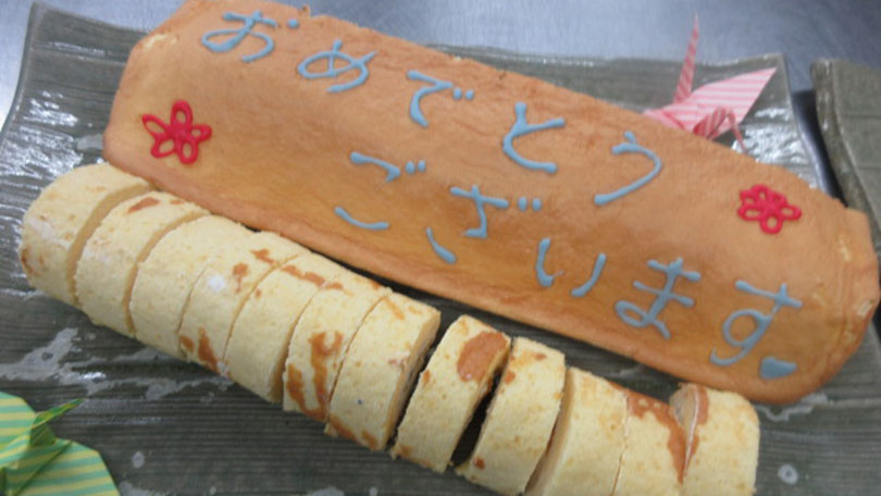 おやつには、職員手作りのロールケーキに、心を込めた手書きのお祝いプレートを添えてお出ししました。皆さんの笑顔があふれる、温かいひとときとなりました。