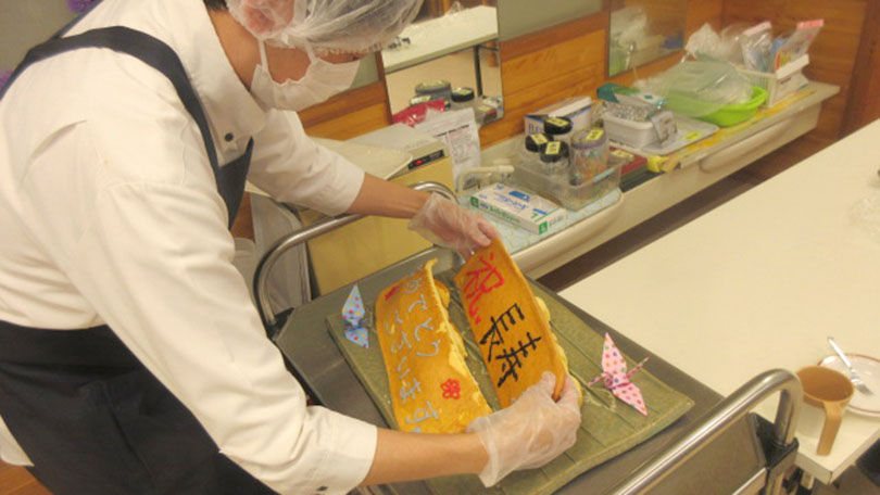 食事支援科では、毎月さまざまな取り組みを通じて、ご利用者の皆さんに食の楽しみをお届けしています。行事の際には、担当職員と栄養士が打ち合わせを重ね、季節感やお祝いの気持ちを込めた特別メニューをご用意しています。