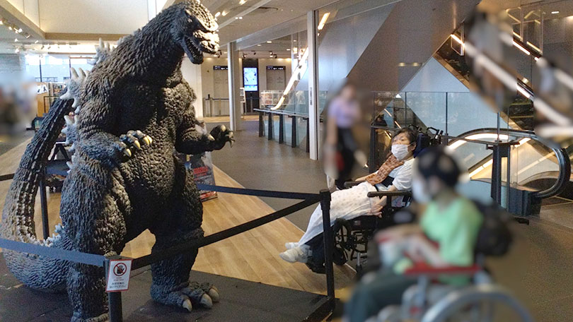 現地では、ゴジラの模型と一緒に記念写真を撮ったり、ランチに鉄火丼を召し上がられたりして、ご利用者にとって思い出の1ページになっていれば幸いです。