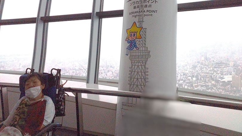 当日はスッキリしない曇り空でしたが、展望台に上がってみると、ソラカラポイント最高到達点からは東京の街並みが眺められ、高層ビル群や遠くの景色など普段の施設での日常生活では見られない光景に、ご利用者は目を輝かせて楽しんでおられました。