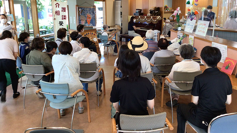 7月27日(日)の谷在家さくらマルシェではこのピアノを使用して、ミュージックフェスティバルを開催し、地域の方々とご入居者、職員皆で楽しむことができました。