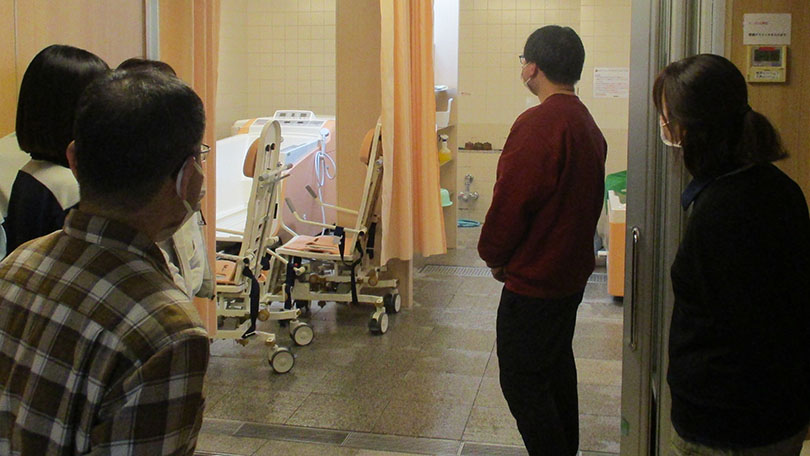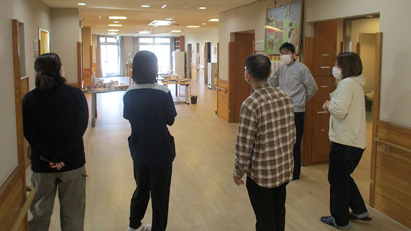 この日は、足立区にある「特別養護老人ホームさくら・障害者支援施設かえで」にメンバーが集合しました。同じ法人であっても、拠点エリアが離れていると他施設の工夫を知る機会は意外と少ないものです。